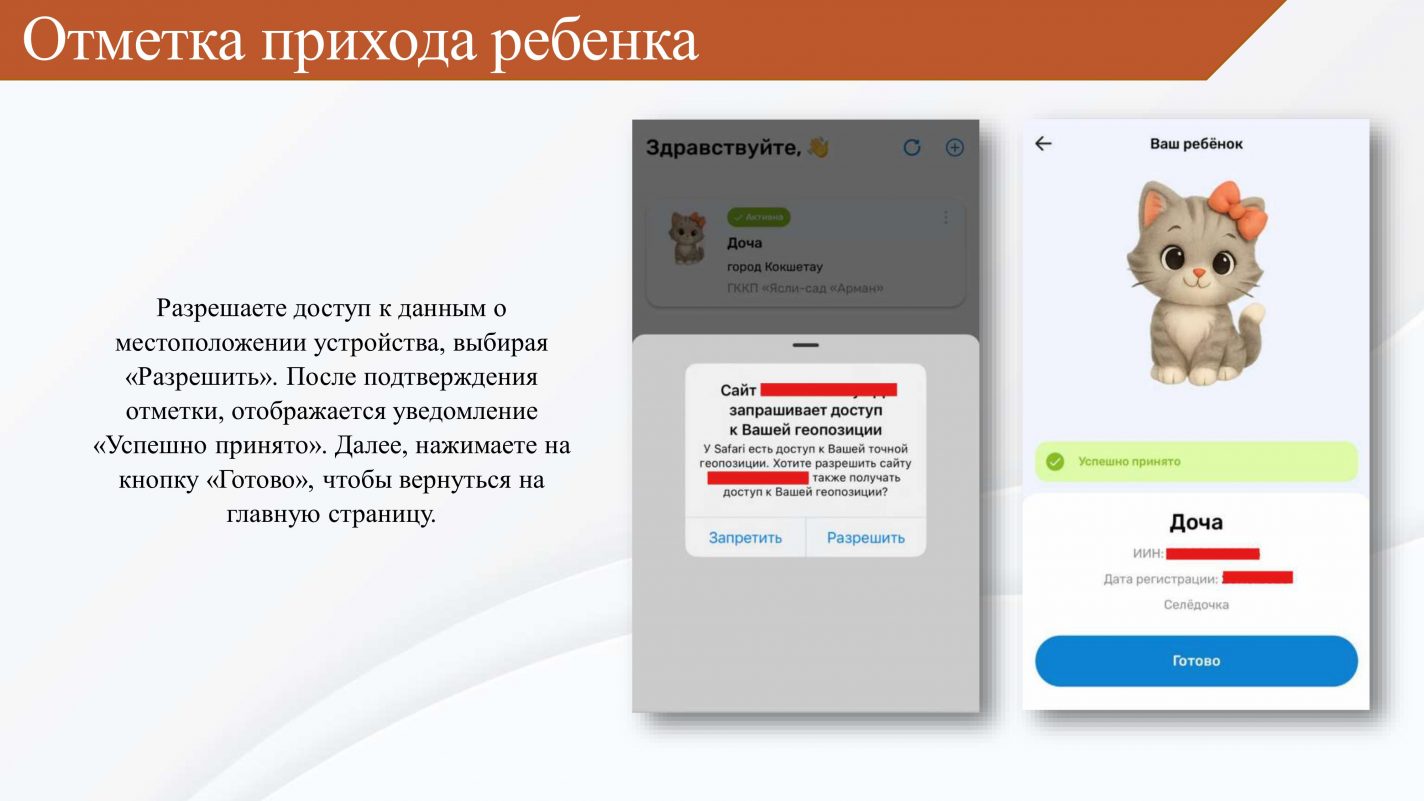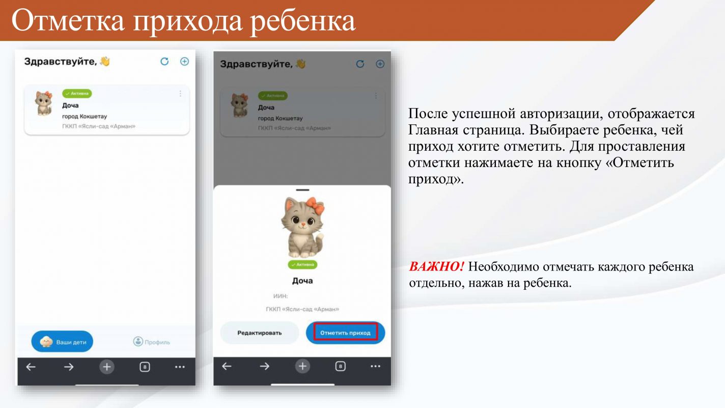 Баланың келгенін белгілеу бойынша нұсқаулық